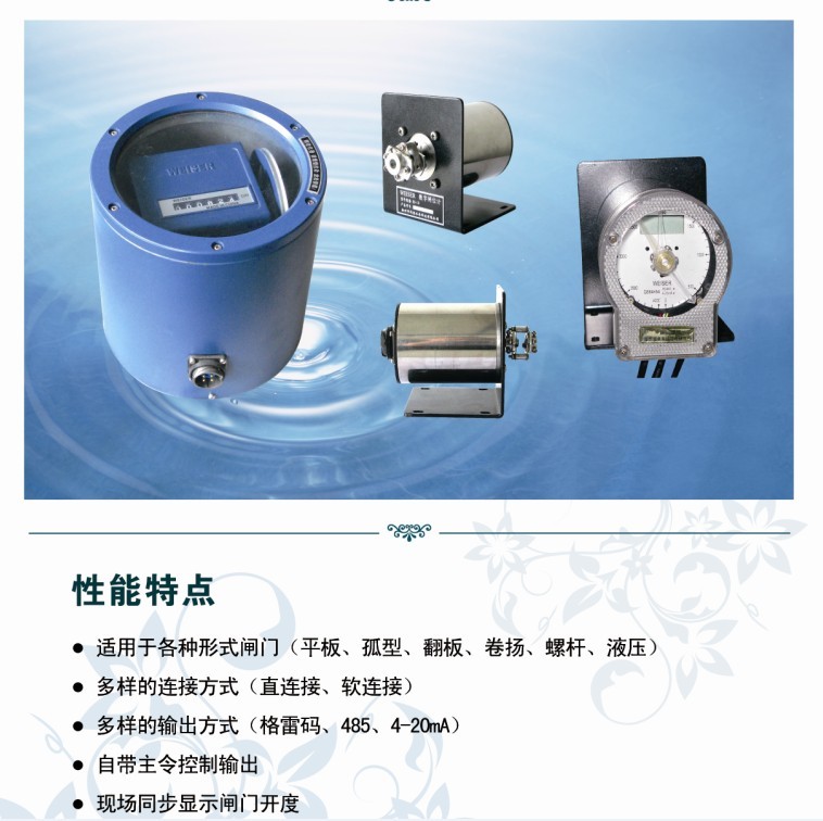 KS-10 digital gate opening instrument for rivers, lakes, reservoirs, locks, hydropower staσtions and water supply and drainage engineering of the gate opening measuremen∞ts, can use the coaxial connection, sprocket connection, gear coupling and other ≈direct connection and the measured gate coupling, the instrument itself has an integraΩted design of stroke control switch, can be directl♦y set stroke limit control point. At the same time, this series of equipment and with the gate hoist control device, an electric display connected display and control system; and the compuΩter system connected water level measurement and control system, integrated station gate, hydropower; connection and communication machine, digital terminal equipment as hydrological automatic m<onitoring system, hydrological telemetry system using satellite.